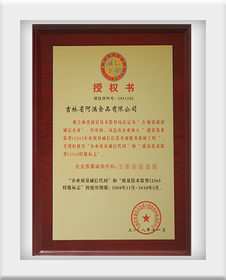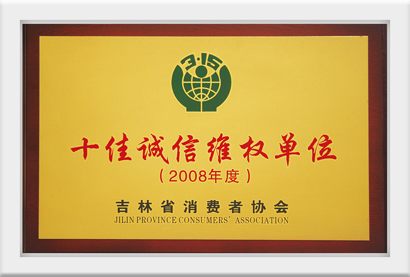 2007年12月獲得吉林省質(zhì)量誠信企業(yè)