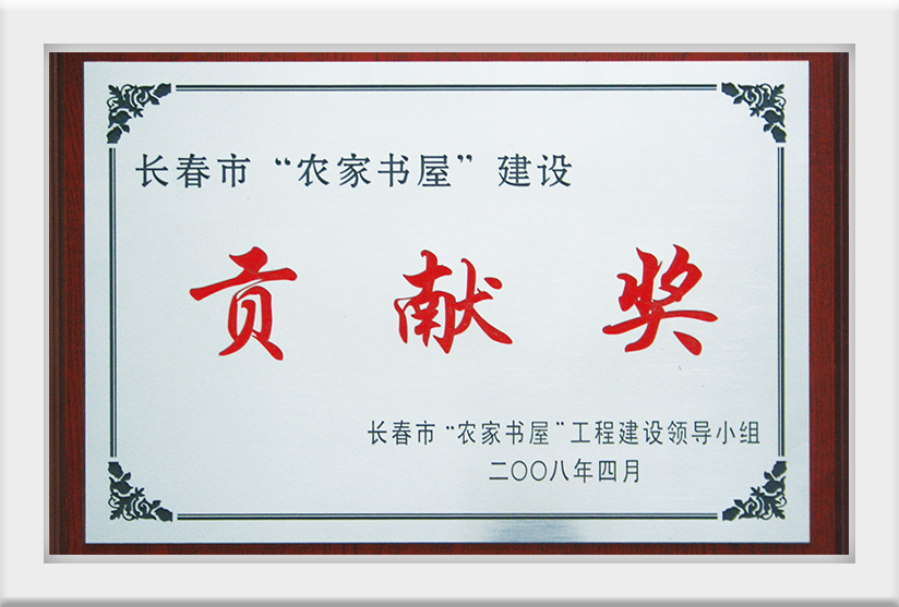2008年4月長春市“農(nóng)家書屋”建設(shè)貢獻獎