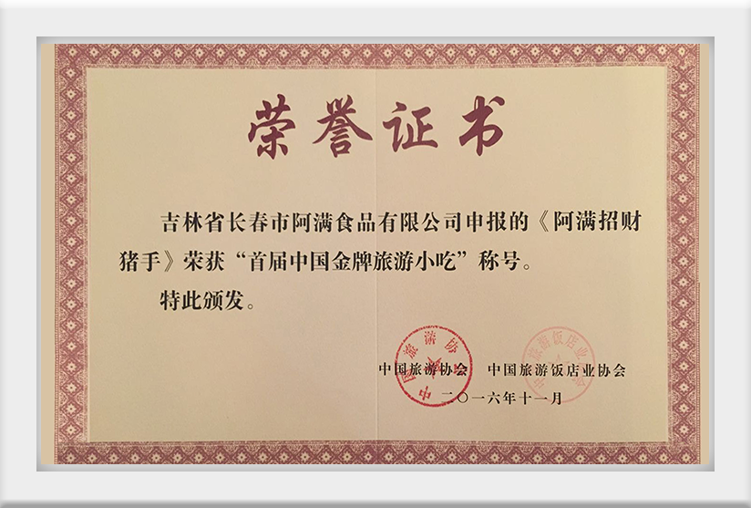 2016年11月榮獲“首屆中國金牌旅游小吃“稱號